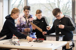 Schritte für die Zeit nach der FTS planen wir ab dem 8. Schuljahr. Im Berufsorientierungspraktikum (BOP) probieren die Jugendlichen verschiedene Berufsbilder aus. Kleine praxisorientierte Einstiegskurse zu den verschiedenen Handwerks- und Dienstleistungsberufen stehen zur Wahl. Zwei Betriebspraktika, um die sich die Jugendlichen selbstständig bewerben, schließen sich an. Gemeinsam mit unseren Kooperationspartnern veranstalten wir jährlich eine Ausbildungsmesse, um zu informieren und Interesse für einen Ausbildungsberuf zu wecken.